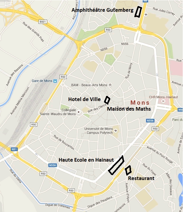 Le mardi 25/8, l’accueil se fera uniquement sur le site de Nimy (UMONS), à l’amphithéâtre Gutenberg, avenue du champ de mars 8 (de 9 h à 11 h 30). La Conférence de Madame Artigue (9 h 30) et la séance académique (11 h) seront suivies d’un apéritif offert et du repas de midi au restaurant Houzeau (boulevard Dolez 69, en face de la Haute Ecole).