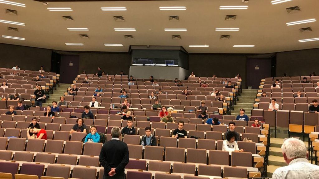 120 élèves de secondaire, dans un auditoire de l’Université de Namur, ce mercredi après-midi!