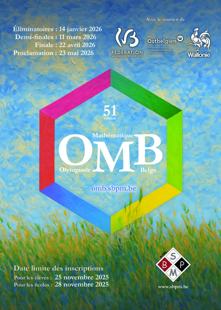 C’est en 1976 que la SBPMef a créé une Ă©preuve annuelle: l’Olympiade MathĂ©matique Belge (OMB). Cette extraordinaire aventure s’est poursuivie grâce  au formidable travail fourni par l’importante  Ă©quipe de bĂ©nĂ©voles qui gèrent cette compĂ©tition – tout Ă  fait amicale – aussi bien sur le plan administratif que sur le plan scientifique, ainsi que grâce Ă  l’enthousiasme des Ă©lèves participants et de leurs professeurs qui les incitent Ă  s’inscrire et qui les motivent.