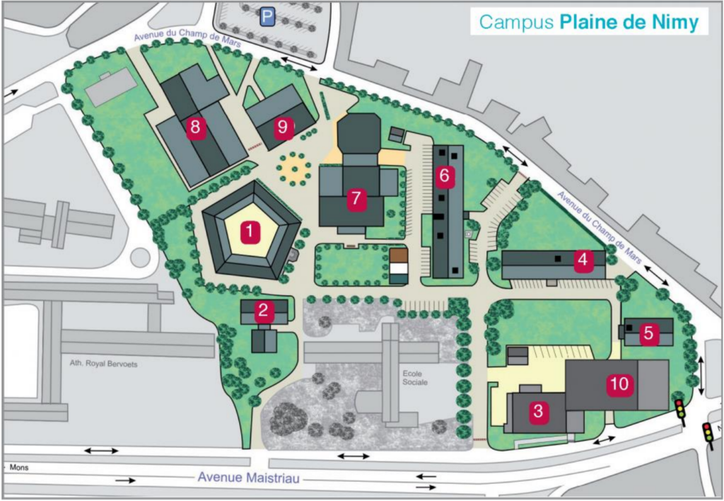 - N°10 / Bâtiment de Vinci : Secrétariat de la Facultés des Sciences, salle d’études, laboratoires Faculté des Sciences et Faculté Traduction et d’Interprétation – Ecole d’Interprètes Internationaux